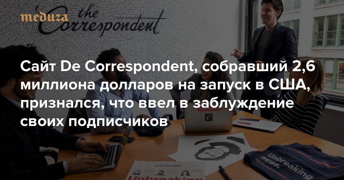 «Мы облажались» Сайт De Correspondent, собравший 2,6 миллиона долларов на запуск в США, признался, что ввел в заблуждение своих подписчиков