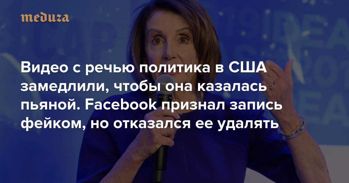 Видео с речью политика в США замедлили, чтобы она казалась пьяной. Facebook признал запись фейком, но отказался ее удалять