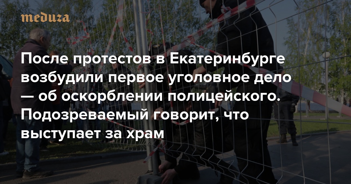 После протестов в Екатеринбурге возбудили первое уголовное дело — об оскорблении полицейского. Подозреваемый говорит, что выступает за храм