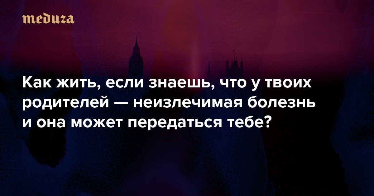 Как жить, если знаешь, что у твоих родителей — неизлечимая болезнь и она может передаться тебе? Мы поговорили с такими людьми