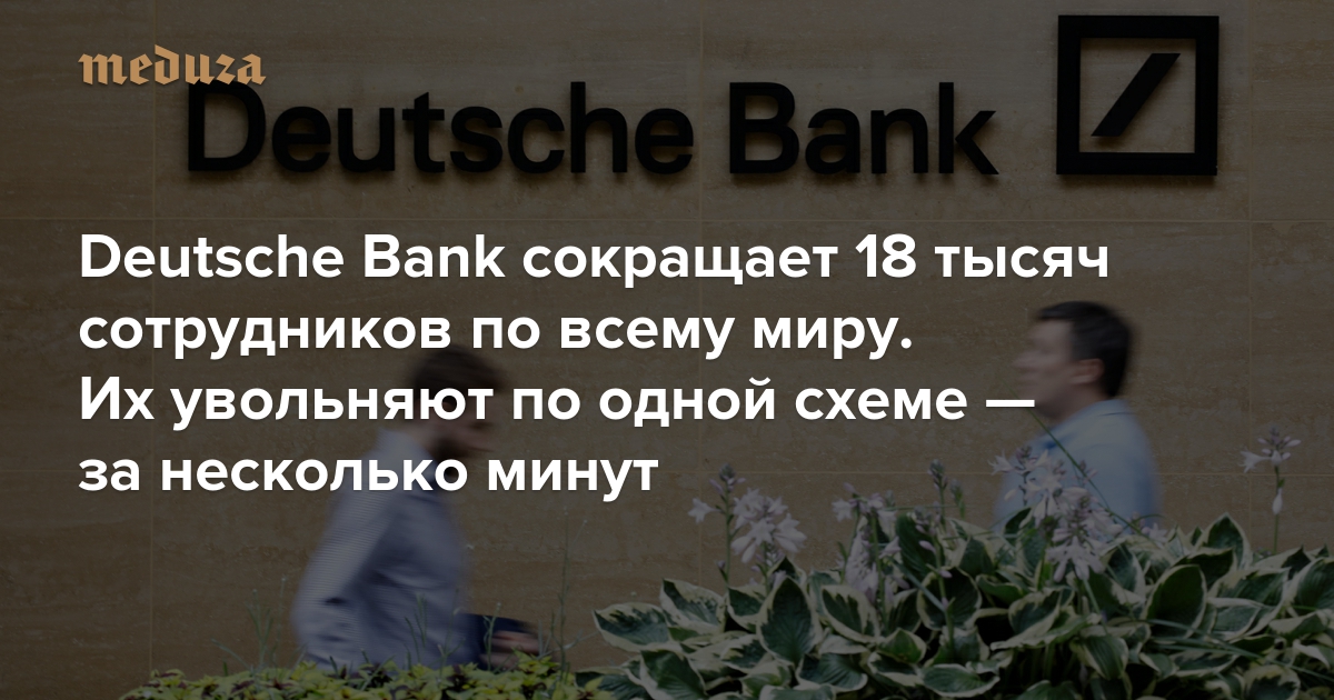 Deutsche Bank сокращает 18 тысяч сотрудников по всему миру. Их увольняют по одной схеме — за несколько минут