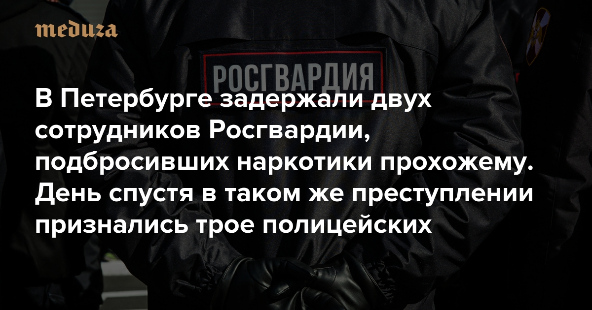 В Петербурге задержали двух сотрудников Росгвардии, подбросивших наркотики прохожему. День спустя в таком же преступлении признались трое полицейских