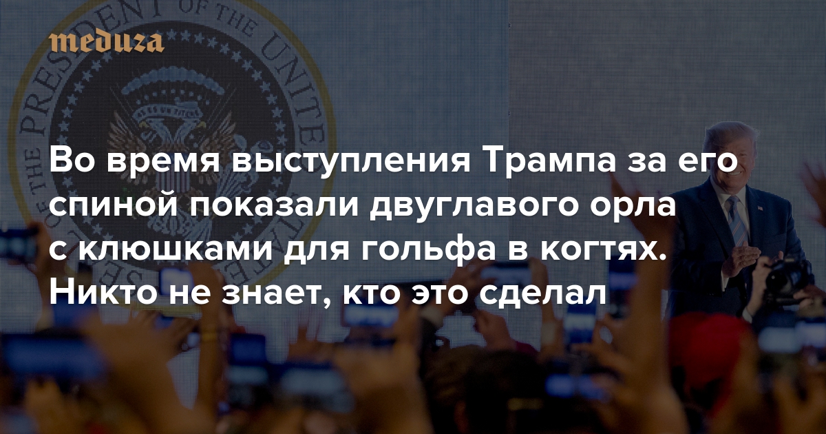 Во время выступления Трампа за его спиной показали двуглавого орла с клюшками для гольфа в когтях. Никто не знает, кто это сделал
