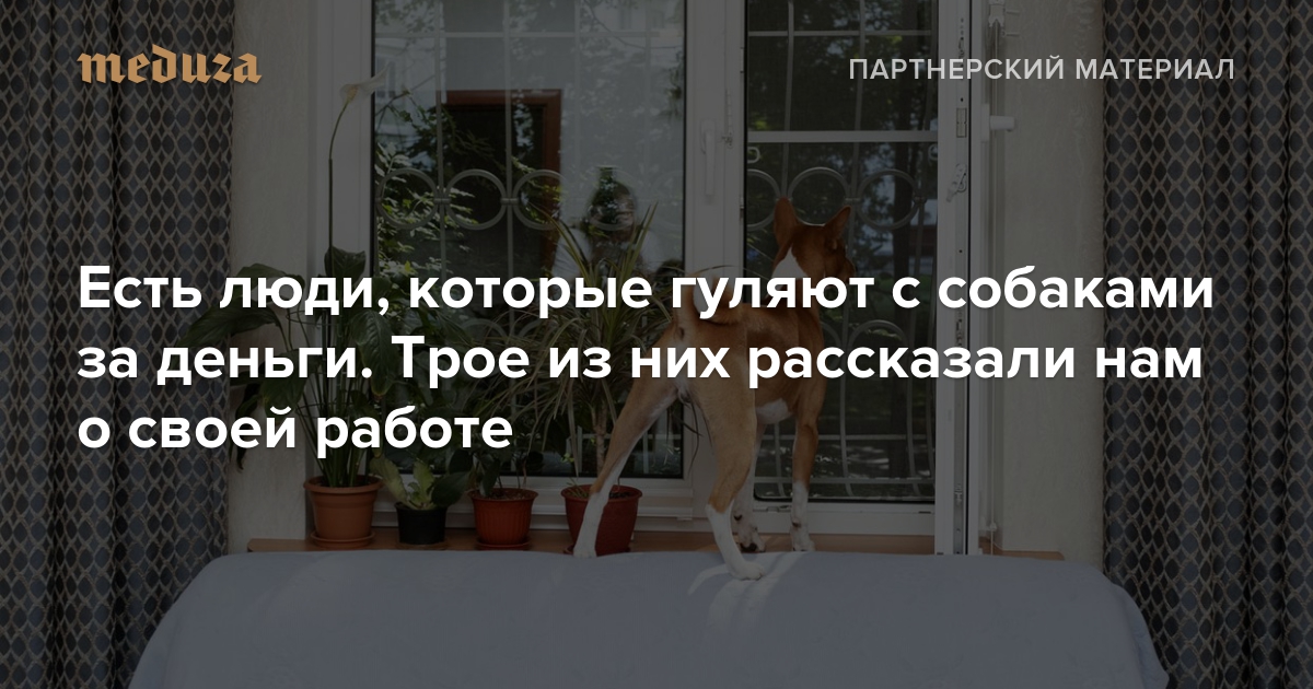 Если у вас есть собака, вы, во-первых, счастливчик. А во-вторых, ваша жизнь подчинена режиму: ведь с животным нужно регулярно гулять. Но что делать, если вы заболели? Или у вас важное совещание? Да и в отпуск пора, в конце концов! Раньше можно было рассчитывать только на помощь родственников, друзей и соседей. Но в последние годы в России появились люди, которые профессионально следят за собаками, пока их хозяева в отъезде, болеют или просто очень заняты. Такого специалиста можно попросить просто выгулять пса или даже взять его к себе на несколько дней. Целая команда профессионалов есть на сайте сервиса «Гульдог». «Медуза» поговорила с тремя из них — чтобы узнать больше об этой профессии и людях, которые посвятили себя ей.