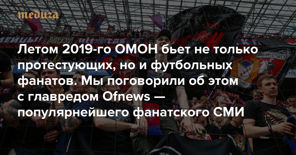 «Никогда не слышал на трибунах ничего хорошего про власть» Летом 2019-го ОМОН бьет не только протестующих, но и футбольных фанатов. Мы поговорили об этом с главредом Ofnews — популярнейшего фанатского СМИ