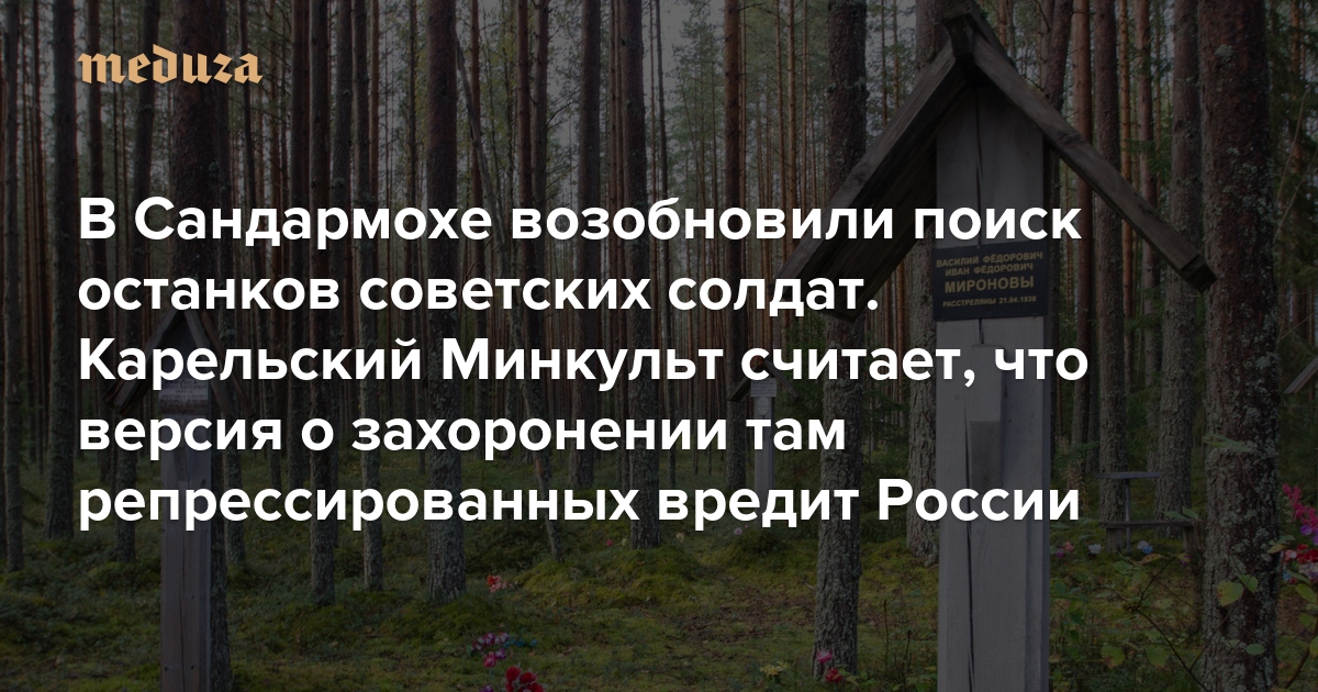 Минкульт Карелии попросил Российское военно-историческое общество (РВИО) провести новые раскопки в урочище Сандармох, аргументировав это ущербом, который наносит имиджу России общепринятая версия о захоронении там репрессированных.