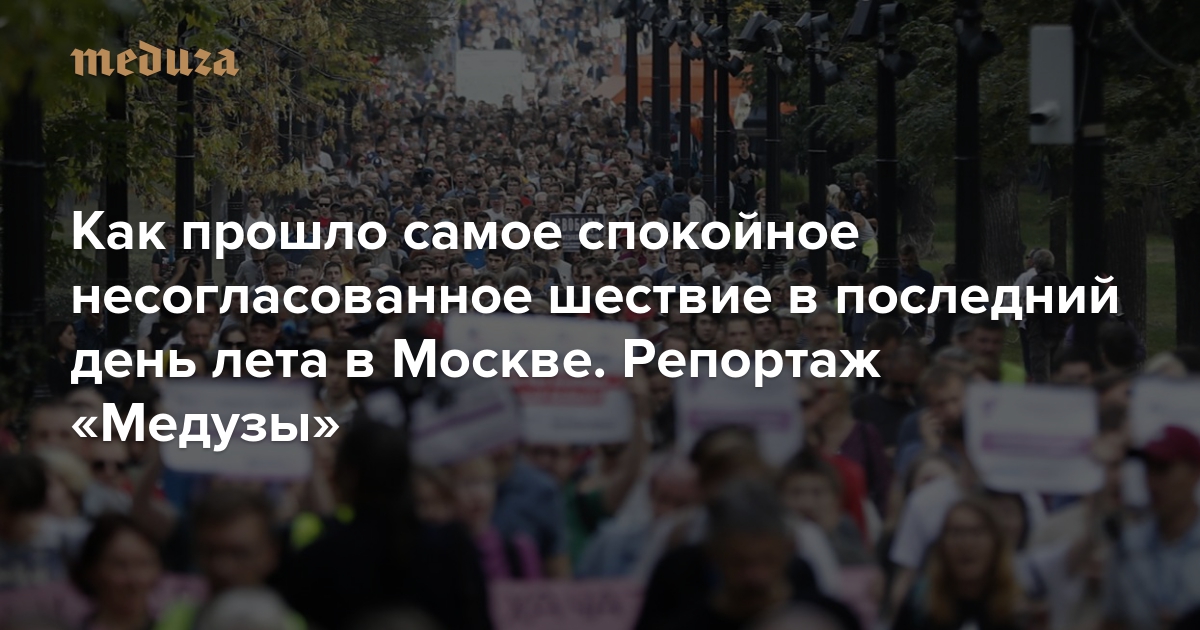 Ни одного задержания Как прошло самое спокойное несогласованное шествие в последний день лета в Москве. Репортаж «Медузы»