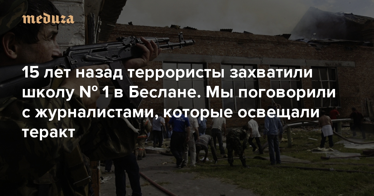 1 сентября 2004 года террористы захватили школу № 1 в Беслане. В течение двух с половиной дней террористы удерживали в заминированном здании 1128 заложников — детей, их родителей, сотрудников школы. В результате теракта, ставшего одним из крупнейших в истории России, погибли 333 человека, 783 получили ранения. Все эти дни на месте событий работали российские и иностранные журналисты — теракт в Беслане стал одной из трагедий, освещавшейся прессой в прямом эфире. Спустя 15 лет после теракта «Медуза» поговорила о Беслане с журналистами, которые работали там во время захвата школы.