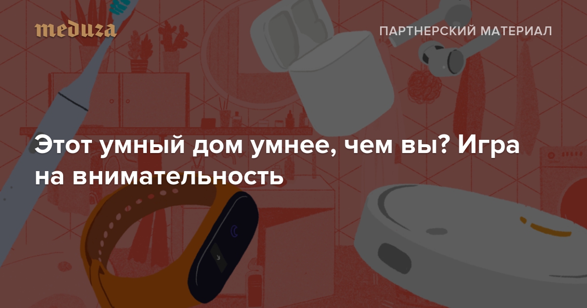 С каждым годом гаджеты становятся сообразительней — в домах появляются умные чайники и рисоварки, умные зубные щетки и термостаты. «Медуза» вместе с Xiaomi сделала игру — вам нужно как следует изучить интерьеры современного дома и найти в нем устройства бренда. Один из наборов, в котором целых 16 гаджетов, можно выиграть. Для этого нужно купить любые товары Xiaomi на сумму от 5000 рублей, зарегистрировать чек и принять участие в розыгрыше. По 250 рублей на оплату услуг связи дают всем — гарантированно!