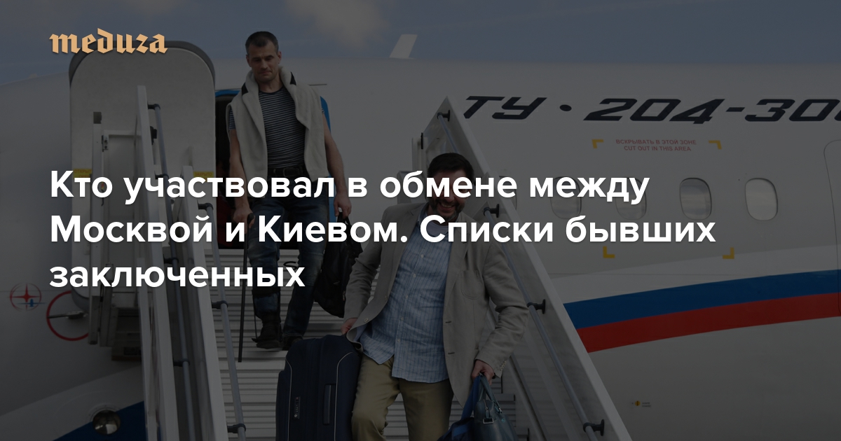 7 сентября Россия и Украина провели обмен заключенными по схеме «35 на 35». Два спецборта одновременно доставили в Москву и Киев граждан, подозреваемых или осужденных странами за различные преступления. Среди участников обмена — режиссер Олег Сенцов и журналист Кирилл Вышинский. «Медуза» рассказывает, что известно об остальных бывших заключенных.