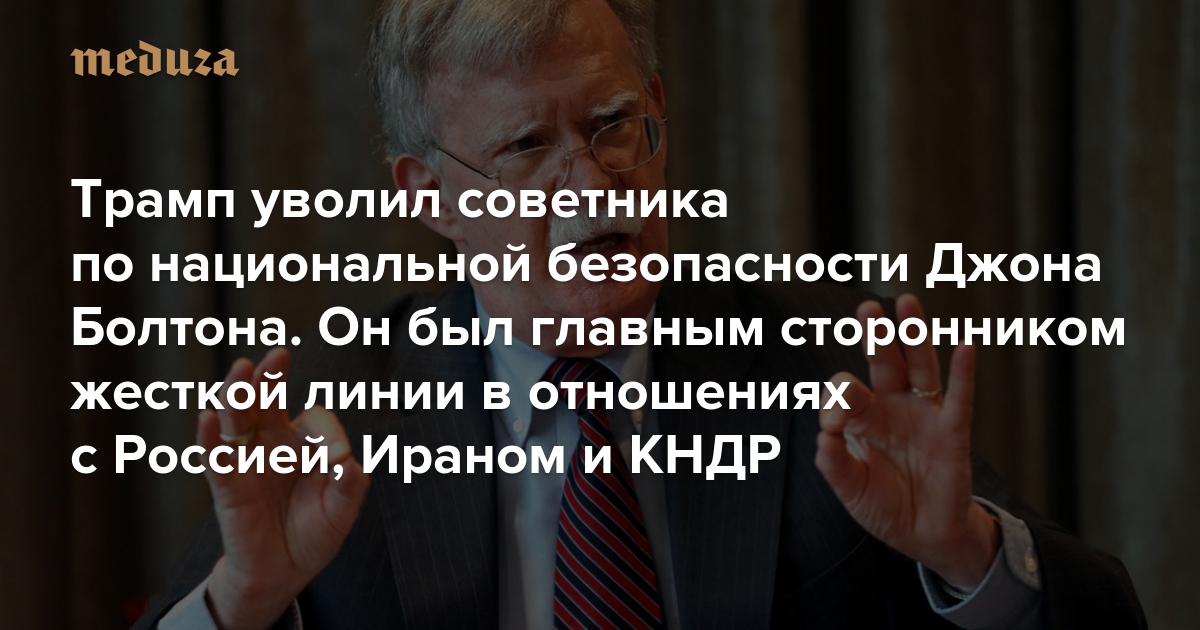 Трамп уволил советника по национальной безопасности Джона Болтона. Он был главным сторонником жесткой линии в отношениях с Россией, Ираном и КНДР
