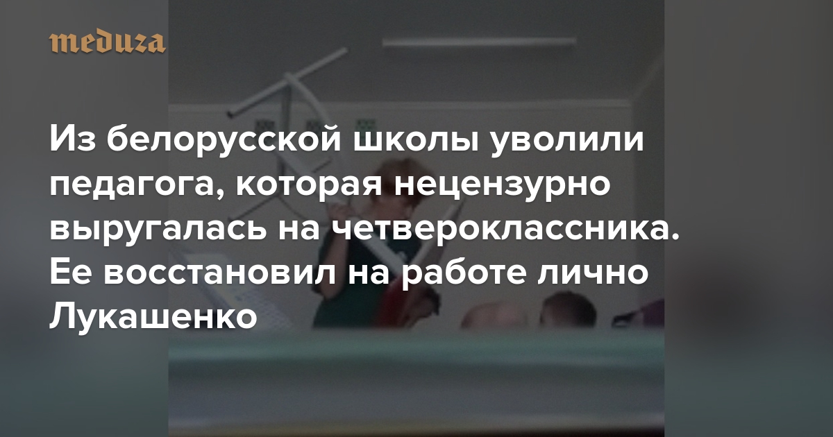 «На месте этого учителя голову бы отвернул щенку» Из белорусской школы уволили педагога, которая нецензурно выругалась на четвероклассника. Ее восстановил на работе лично Лукашенко