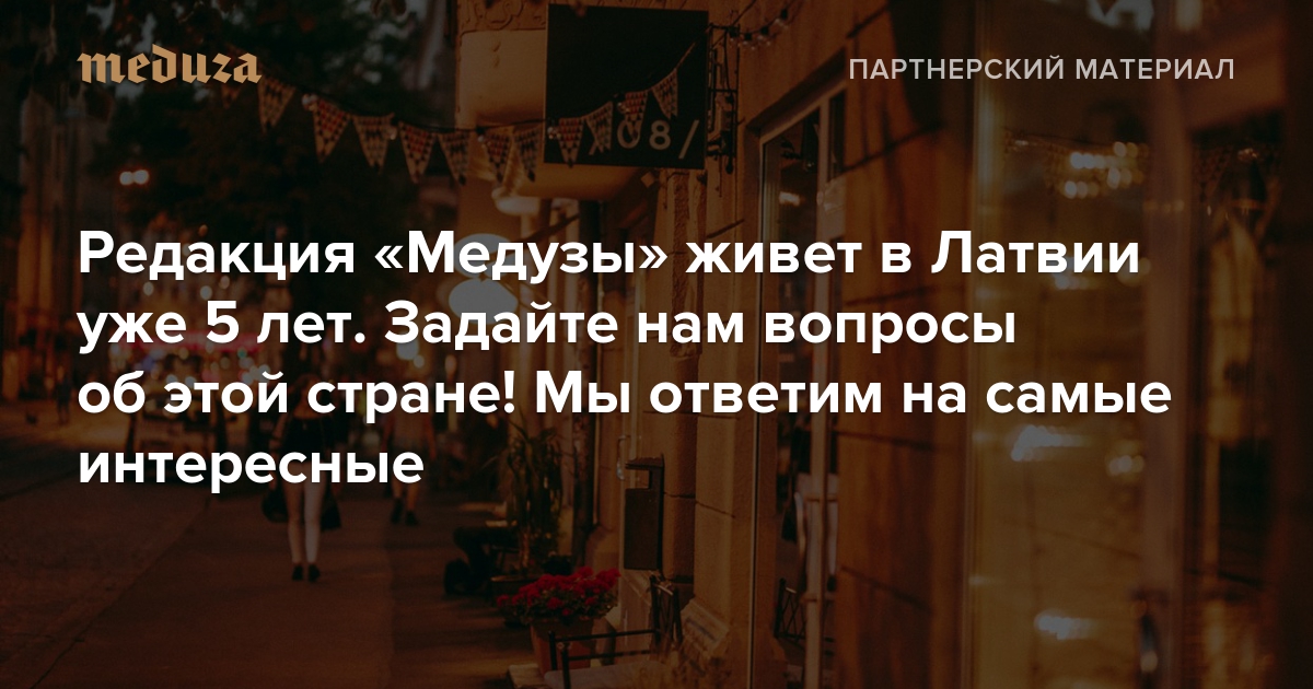 В октябре «Медуза» отмечает свой пятый день рождения. Все это время сотрудники редакции жили и работали в Риге и путешествовали по стране. За пять лет мы успели узнать ту Латвию, которую любят и ценят местные жители, но не успевают увидеть обычные туристы. Мы выяснили, куда идти за лучшими бранчами и видом на город; на что обращать внимание, когда снимаешь здесь квартиру; куда съездить с детьми на выходных, если в Риге вы уже все посмотрели, и почему в латвийских банкоматах регулярно застревает рыбья чешуя. Это лишь малая часть наших знаний о Латвии. Спросите нас о том, что вам интересно узнать об этой стране и ее жителях.