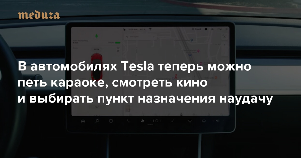В автомобилях Tesla теперь можно петь караоке, смотреть кино и выбирать пункт назначения наудачу