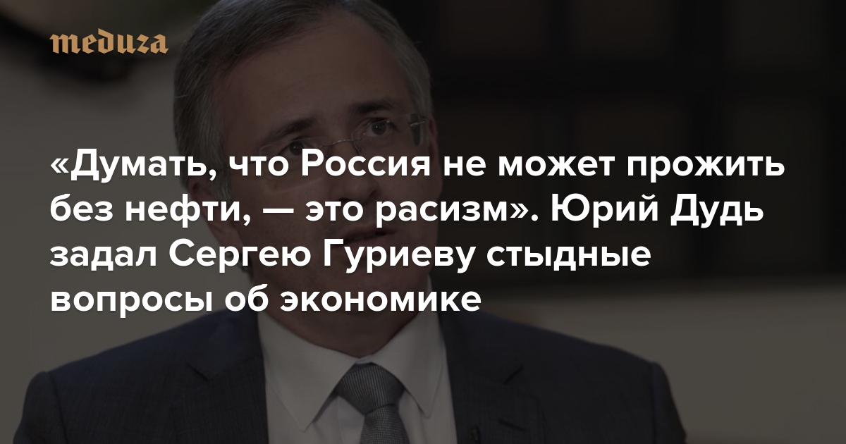 «Думать, что Россия не может прожить без нефти, — это расизм» Юрий Дудь задал Сергею Гуриеву стыдные вопросы об экономике