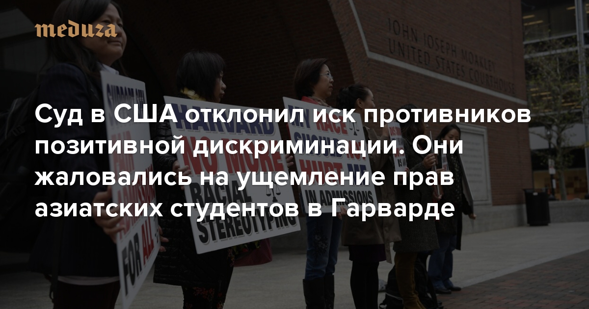 Суд в США отклонил иск противников позитивной дискриминации. Они жаловались на ущемление прав азиатских студентов в Гарварде