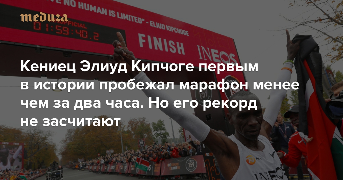 Кениец Элиуд Кипчоге первым в истории пробежал марафон менее чем за два часа. Но его рекорд не засчитают