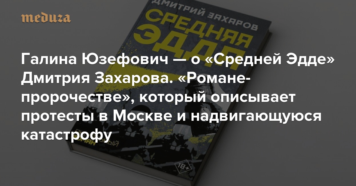 Роман Дмитрия Захарова «Средняя Эдда» — антиутопия, которая рассказывает об уличных столкновениях протестующих с полицией в Москве. Автор дописал свой текст за несколько месяцев до начала уличных акций лета 2019 года. И теперь издательство АСТ, выпустившее книгу, называет ее «романом-пророчеством». Литературный критик «Медузы» Галина Юзефович нашла в «Средней Эдде» больше признаков настоящего, чем будущего.