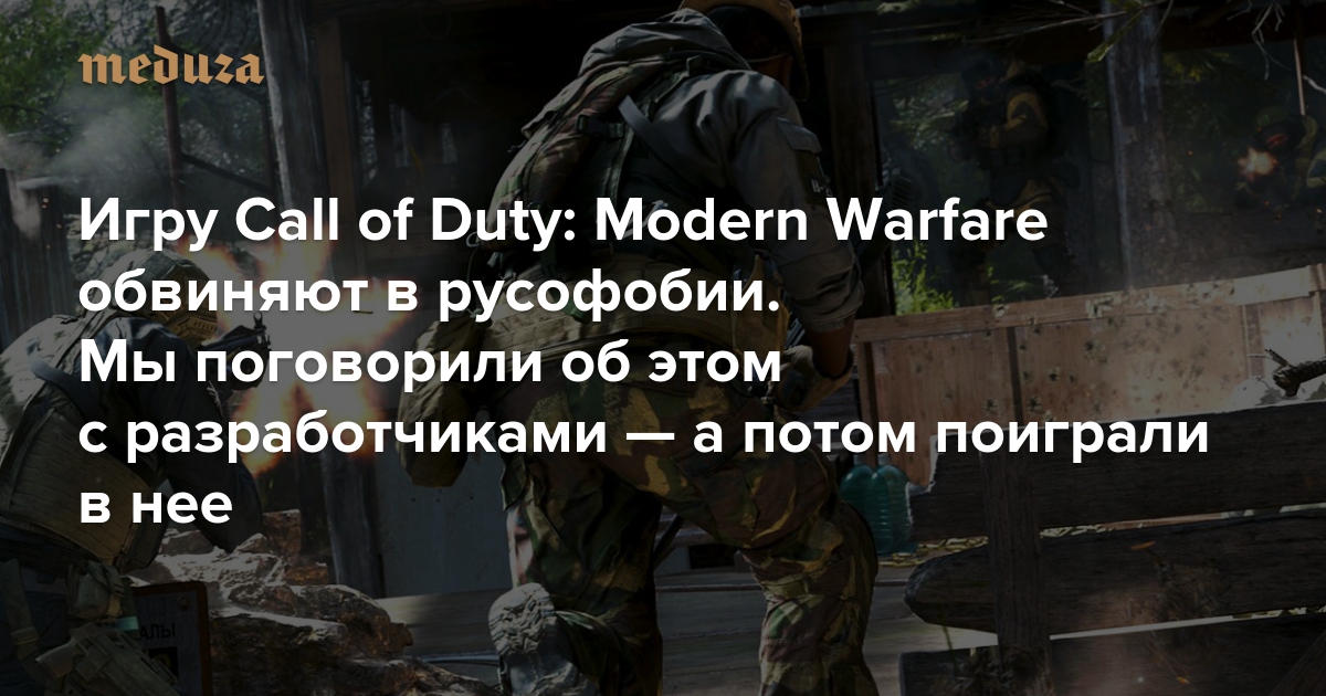 25 октября вышла шестнадцатая часть шутера Call of Duty. Новая игра стала перезапуском подсерии Modern Warfare, посвященной современным военным конфликтам. Анонсируя игру, разработчики обещали, что в ней, «как и в современной войне», не будет правых и виноватых — вместо этого игрокам собирались рассказать о «серой морали», где границы добра и зла размыты. Еще до выхода игры авторов обвинили в русофобии: главным злодеем в Call of Duty оказался российский генерал, под началом которого солдаты устраивают зверства в оккупированной ближневосточной стране. Незадолго до выхода редактор «Медузы» Константин Бенюмов поговорил с разработчиками новой Modern Warfare, а потом поиграл в нее — и делится своими впечатлениями.