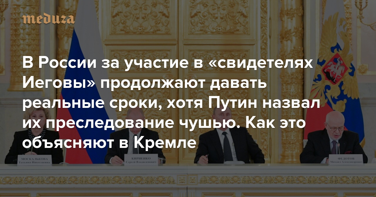 «Медуза»: То есть можно сказать, что тема, которую поднял президент в прошлом году по поводу преследования «свидетелей Иеговы», с точки зрения поручений и каких-то действий Кремля закрыта?