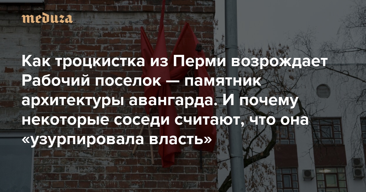 В конце 1920-х — начале 1930-х годов при Мотовилихинском заводе в Перми появился социалистический городок: три десятка зданий авангардной архитектуры, которые должны были стать символом нового пролетарского быта. Спустя десятилетия эти кварталы превратились в район ветхих домов, где живут неблагополучные люди. Жизнь городка изменила социалистка Анастасия Мальцева: десять лет она судилась с чиновниками, а также конфликтовала с подрядчиками, местными пьяницами и просто соседями, несогласными с ее методами благоустройства. Сейчас ее квартал выглядит как модное джентрифицированное пространство, при этом с красными флагами и социалистическими лозунгами. Журналист Михаил Данилович рассказывает, как у Мальцевой это получилось — и почему в маленькой левой утопии нашлось место даже Алексею Навальному.