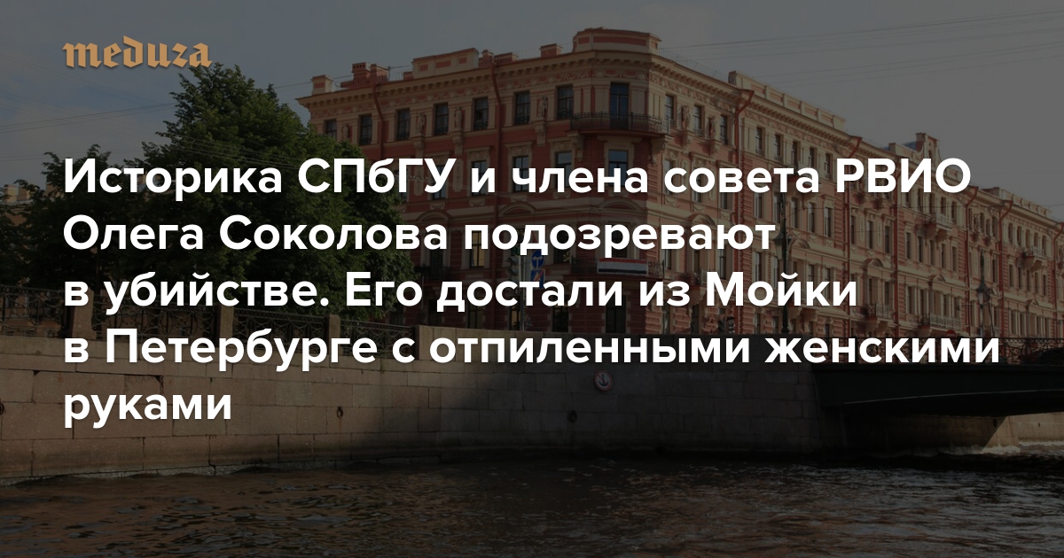 Историка СПбГУ и члена совета РВИО Олега Соколова подозревают в убийстве. Его достали из Мойки в Петербурге с отпиленными женскими руками