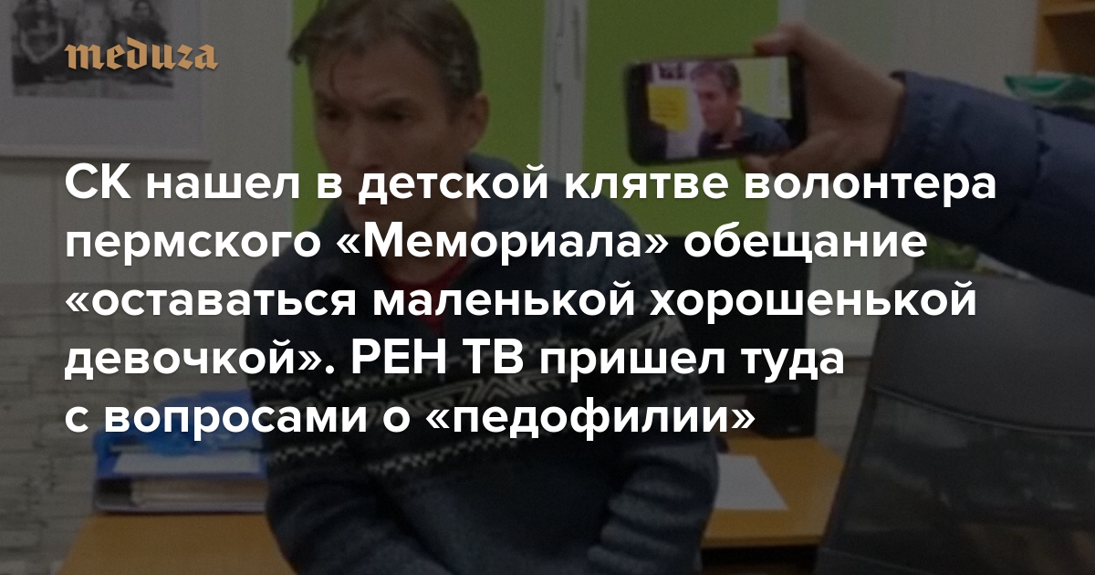 СК нашел в детской клятве волонтера пермского «Мемориала» обещание «оставаться маленькой хорошенькой девочкой». РЕН ТВ пришел туда с вопросами о «педофилии»