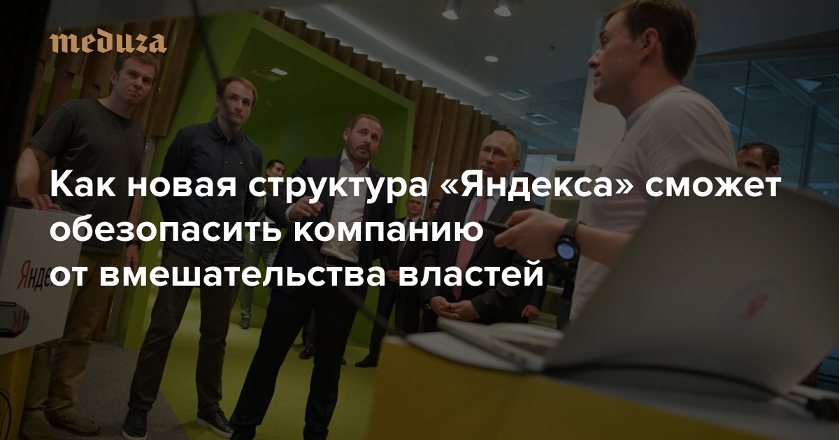 Собеседник «Медузы» в администрации президента и источник, близкий к руководству «Яндекса», поясняли, что текущая акционерная структура «вызывает беспокойство» у российских властей в связи с тем, что голосующие акции полностью «завязаны» на Аркадии Воложе и в случае несчастного случая с ним большинство голосующей доли окажется в руках иностранных акционеров.