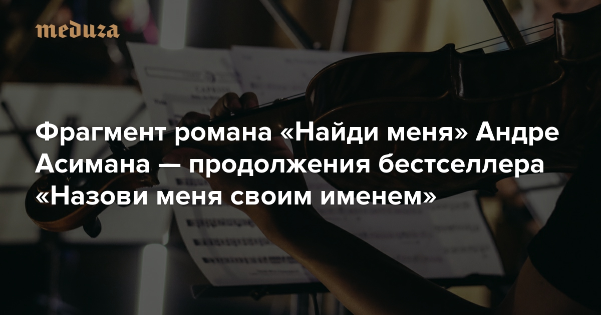 В декабре издательстве Popcorn Books выходит роман Андре Асимана «Найди меня» (переводчик Наталья Рашковская) — продолжение бестселлера «Назови меня своим именем», экранизированного в 2017 году режиссером Лукой Гуаданьино. В романе рассказаны истории прежних героев — Элио, его отца Сэмюэля и бывшего возлюбленного Оливера. Спустя годы после событий первой книги они продолжают вспоминать события прошлого и встречаются вновь. С разрешения издательства «Медуза» публикует фрагмент романа — о случайной встрече на ноябрьском церковном концерте.