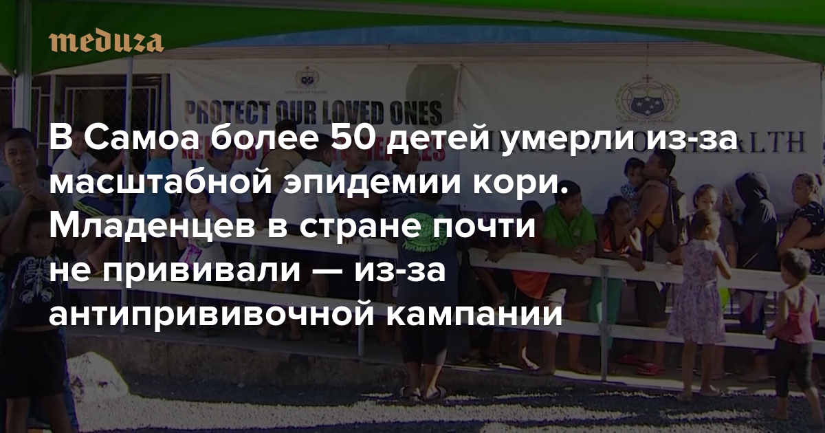 Правительство небольшого островного государства Самоа подтвердило смерть уже более 50 детей из-за продолжающейся на острове эпидемии кори. Причиной эпидемии стал крайне низкий уровень иммунизации детей — вакцинацию прошли менее трети младенцев в стране. Самоанцы отказались вакцинировать детей из-за двух детских смертей в 2018 году, которые произошли после введения вакцины от кори. За смертями последовала антипрививочная кампания в соцсетях — несмотря на то, что причиной гибели детей стала ошибка медсестер.