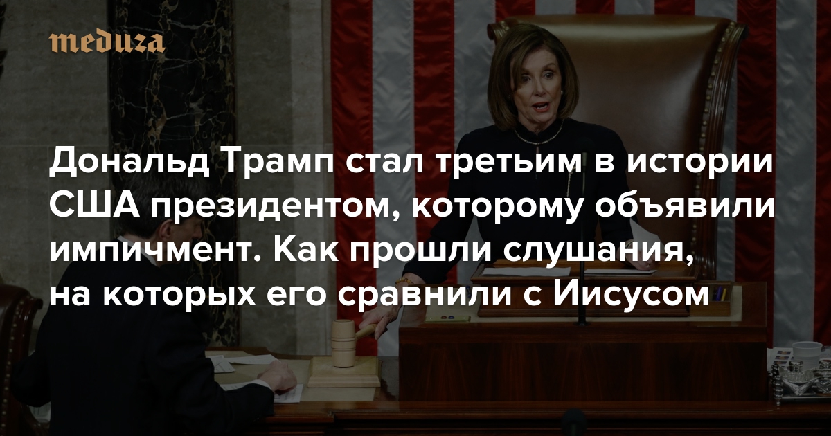 Дональд Трамп стал третьим в истории США президентом, которому объявили импичмент Как прошли слушания, на которых его сравнили с Иисусом