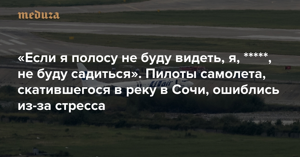 «Если я полосу не буду видеть, я, *****, не буду садиться» Пилоты самолета, скатившегося в реку в Сочи, ошиблись из-за стресса: отчет МАК