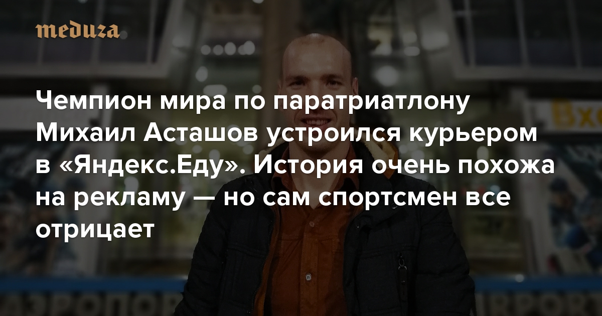 Чемпион мира по паратриатлону Михаил Асташов устроился курьером в «Яндекс.Еду». История очень похожа на рекламу — но сам спортсмен все отрицает