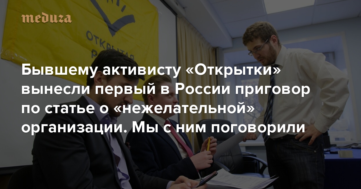«Указано, что я использовал сокращенное название „Открытой России“ — в целях конспирации» Бывшему активисту «Открытки» вынесли приговор по статье о «нежелательной» организации. Мы с ним поговорили