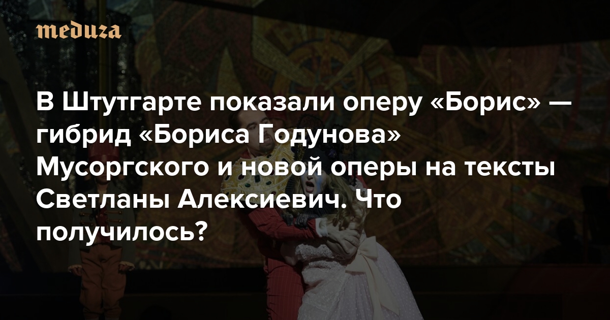 Штутгартская опера представила один из самых неожиданных оперных проектов сезона — оперу «Борис», в которой герои «Бориса Годунова» произносят документальные монологи из книги Светланы Алексиевич «Время секонд-хенд», а музыка Модеста Мусоргского встречается с сочинением композитора Сергея Невского. По просьбе «Медузы» критик Алексей Мунипов рассказывает, ради чего стоит съездить в Штутгарт.