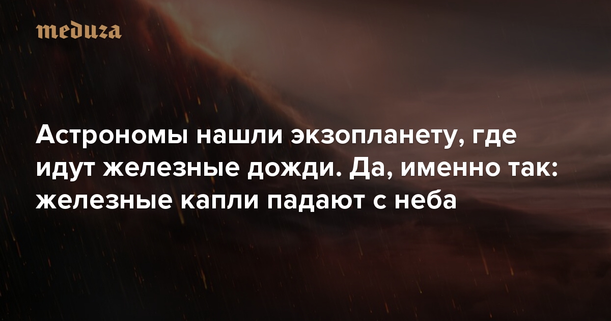 Астрономы нашли экзопланету, где идут железные дожди. Да, именно так: железные капли падают с неба