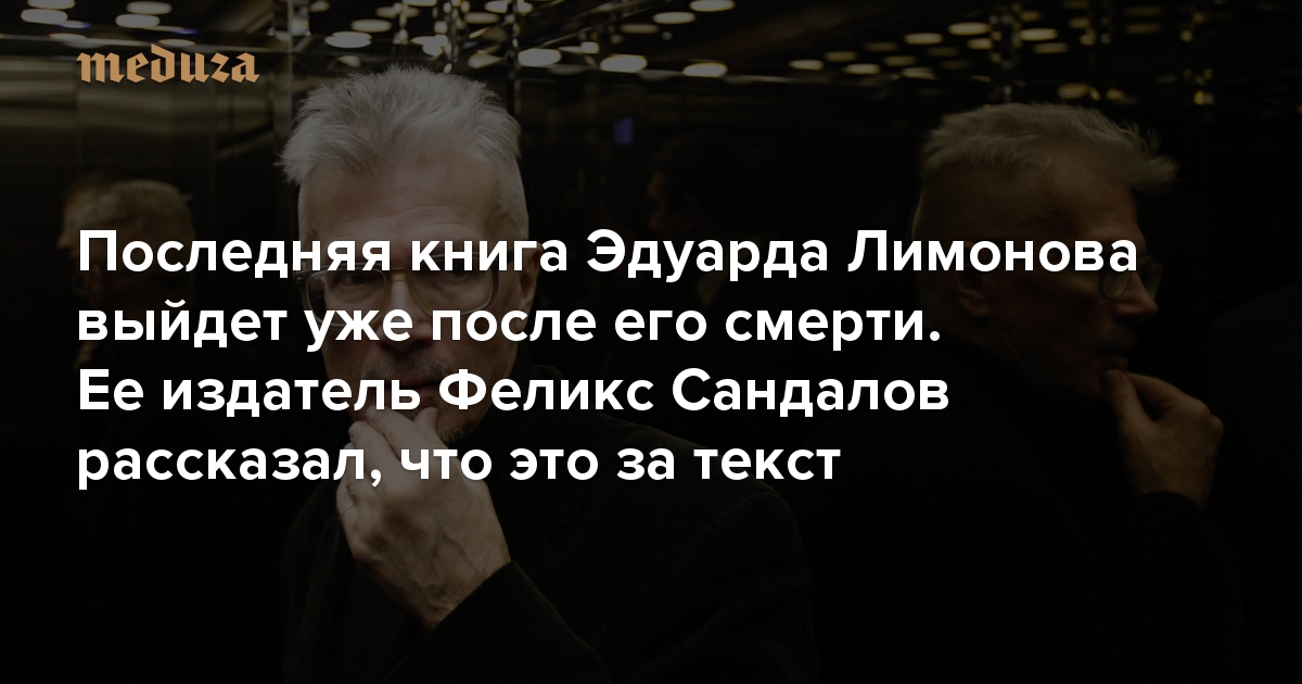 17 марта в возрасте 77 лет — после госпитализации и двух операций — умер писатель и политик Эдуард Лимонов. Незадолго до его смерти, в середине марта стало известно, что новую книгу Лимонова «Старик путешествует» собирается напечатать издательство Individuum. «Медуза» поговорила с главным редактором издательства Феликсом Сандаловым, который встречался с Лимоновым за неделю до его смерти и уже прочитал его последнюю книгу.