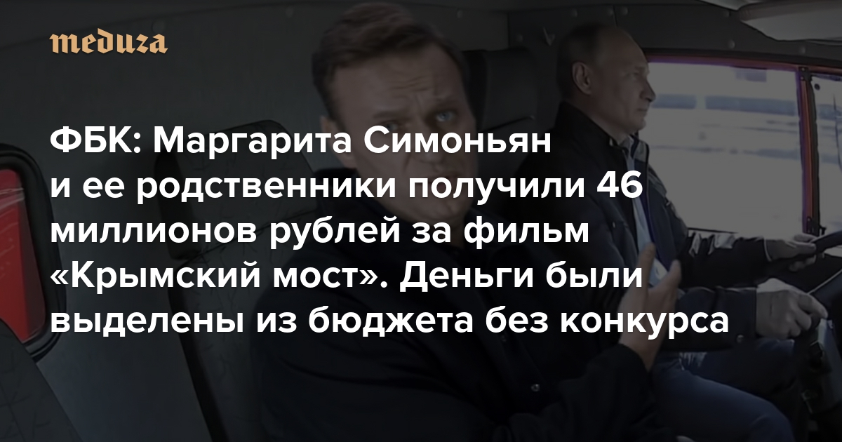 ФБК: Маргарита Симоньян и ее родственники получили 46 миллионов рублей за фильм «Крымский мост». Деньги были выделены из бюджета без конкурса