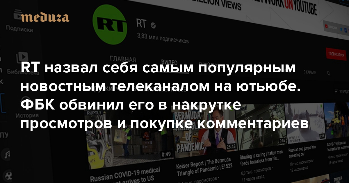 RT назвал себя самым популярным новостным телеканалом на ютьюбе. ФБК обвинил его в накрутке просмотров и покупке комментариев