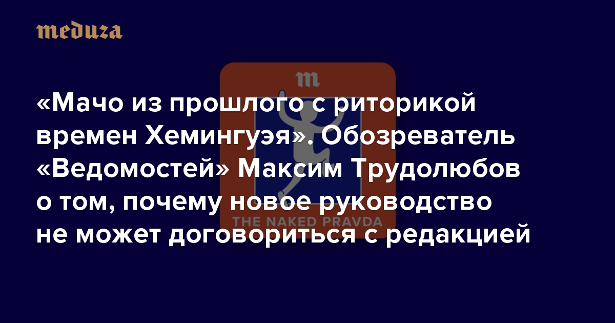 «Пришли мачо из прошлого с риторикой времен Хемингуэя» Обозреватель «Ведомостей» Максим Трудолюбов о том, почему новое руководство не может договориться с редакцией