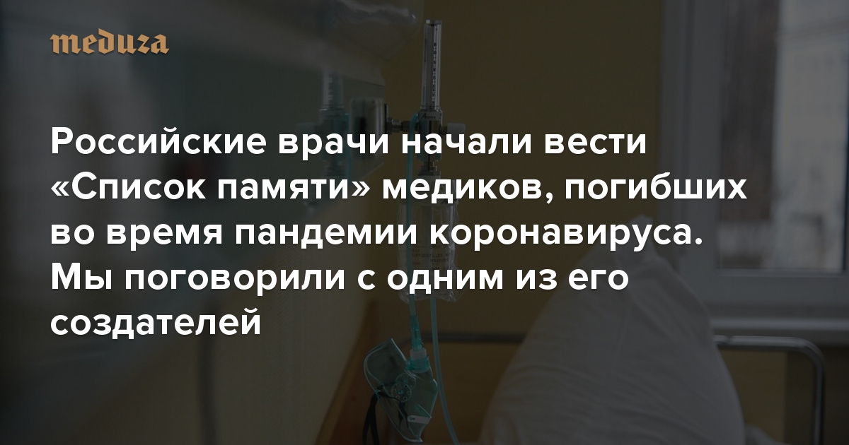 «Не забыть погибших коллег — естественная идея» Российские врачи начали вести «Список памяти» медиков, погибших во время пандемии коронавируса. Мы поговорили с одним из его создателей