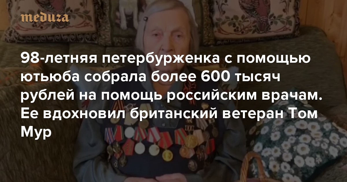98-летняя петербурженка с помощью ютьюба собрала более 600 тысяч рублей на помощь российским врачам Ее вдохновил британский ветеран Том Мур