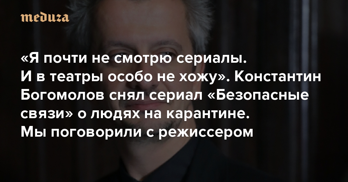 «Я почти не смотрю сериалы. И в театры особо не хожу» Константин Богомолов снял новый сериал «Безопасные связи», герои которого сидят на карантине. Мы поговорили с режиссером