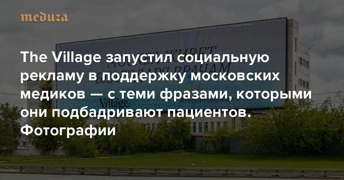 Издание The Village запустило в Москве кампанию в поддержку медиков. Она называется #героигорожан. В рамках этой кампании на нескольких московских медиафасадах разместили цитаты сотрудников больниц для пациентов с коронавирусом. Это слова, которые сами врачи говорили людям, вылечившимся от COVID-19. «Мы хотим поблагодарить медработников и подчеркнуть их значимость в жизни города», — объяснил цель кампании The Village.
