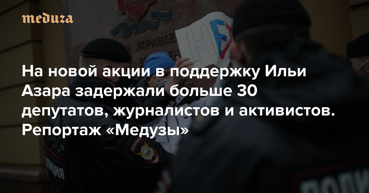 «Массовый пикет вместе с полицией» На новой акции в поддержку Ильи Азара задержали больше 30 депутатов, журналистов и активистов. Репортаж «Медузы»