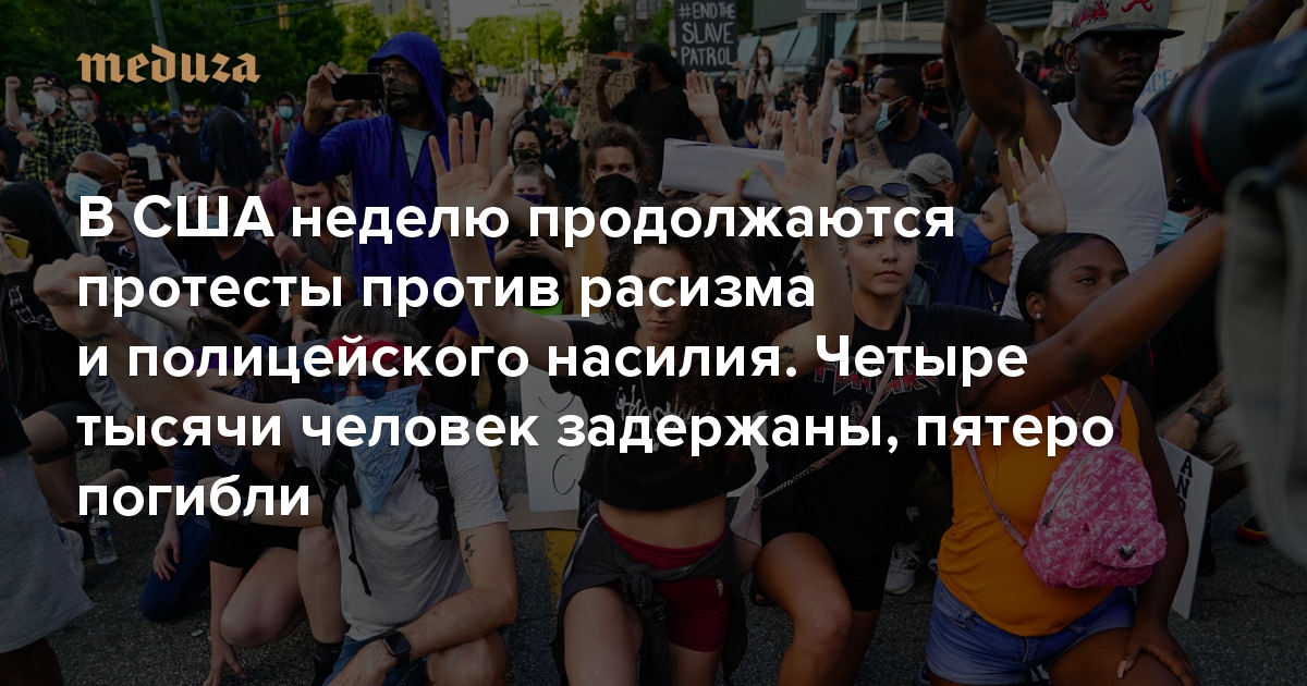 В США неделю продолжаются протесты против расизма и полицейского насилия. Четыре тысячи человек задержаны, пятеро погибли Вот как это выглядит