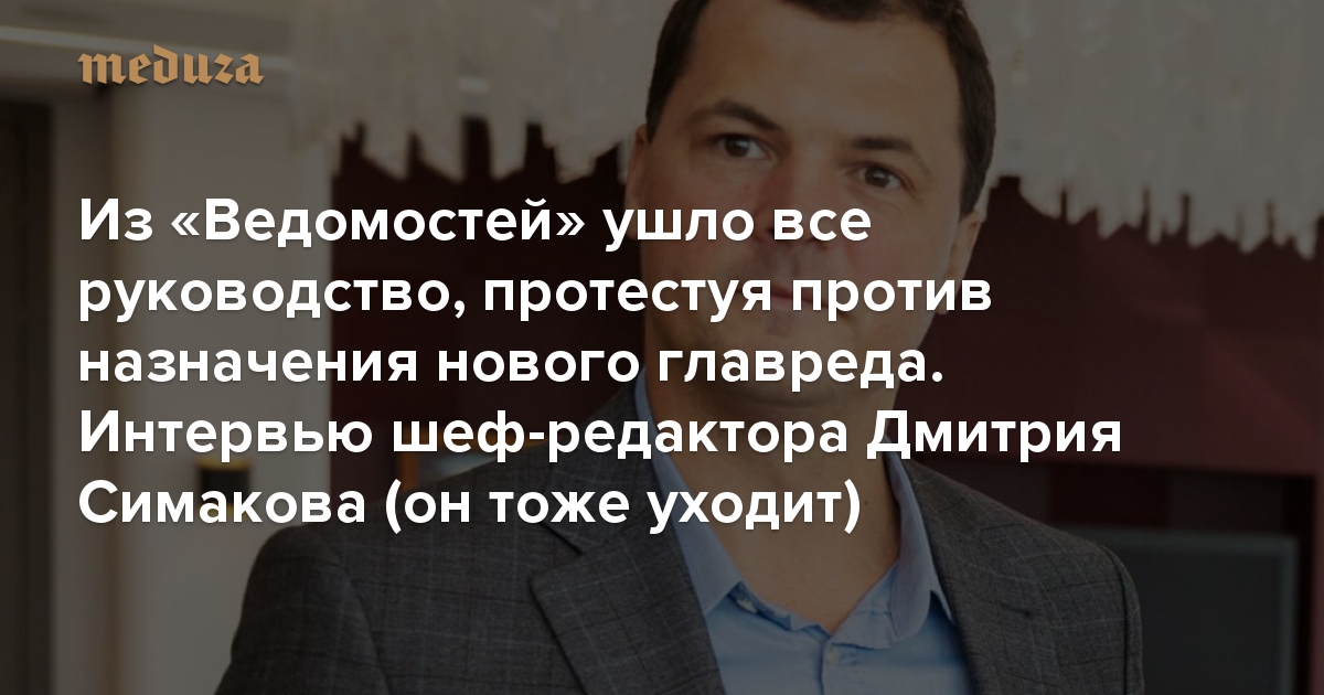 «Это, честно говоря, катастрофа» Из «Ведомостей» ушло все руководство, протестуя против назначения нового главреда. Интервью шеф-редактора Дмитрия Симакова (он тоже уходит)