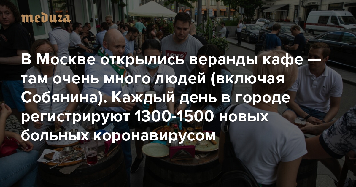 В Москве открылись веранды кафе — там очень много людей (включая Собянина). Каждый день в городе регистрируют 1300-1500 новых больных коронавирусом
