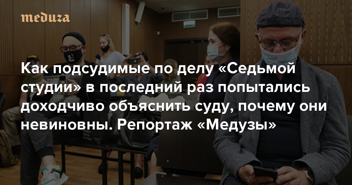 Не волнуйтесь, ваша честь, я буду краток Как подсудимые по делу «Седьмой студии» в последний раз попытались доходчиво объяснить суду, почему они невиновны. Репортаж «Медузы»