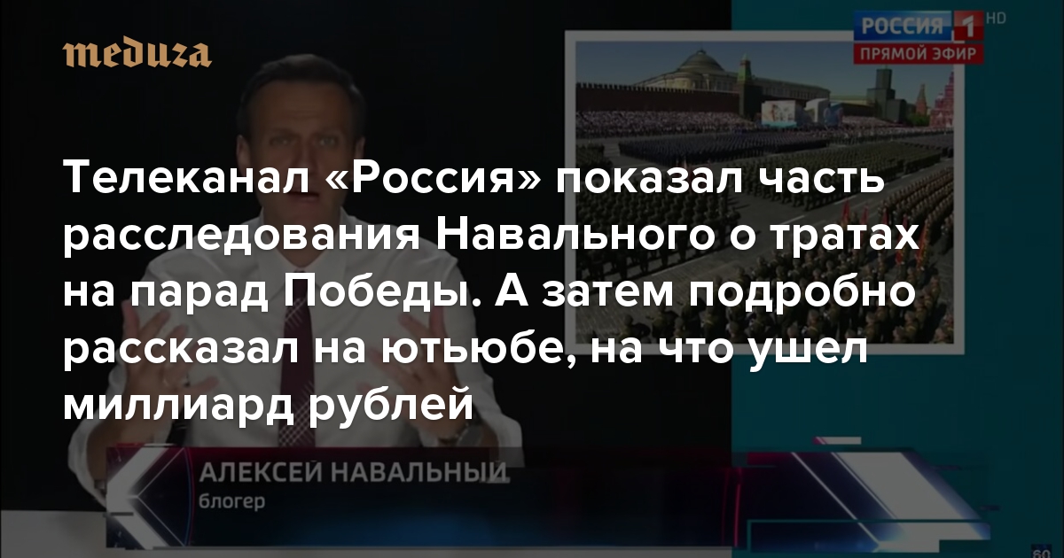 Телеканал «Россия» показал часть расследования Навального о тратах на парад Победы. А затем подробно рассказал на ютьюбе, на что ушел миллиард рублей